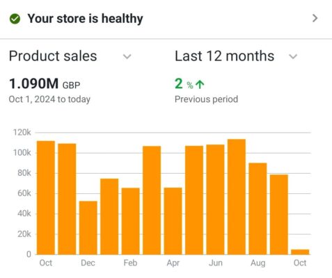 Running an online business requires constant monitoring and adapting to market shifts. Over the past 12 months, our Amazon store has shown steady progress and resilience, achieving £1.09M in product sales with a 2% increase compared to the previous period.