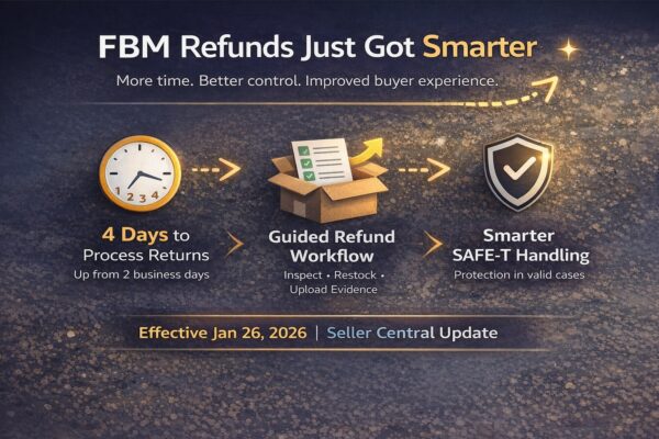 Starting January 26, 2026, Amazon is enhancing the Fulfilled by Merchant (FBM) refund process giving sellers more time and control when handling returns.