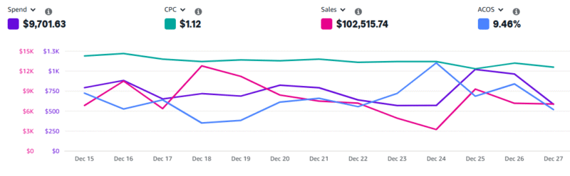 Behind these numbers is a familiar rhythm every Amazon seller knows โ€” peaks, dips, recalibration, and momentum rebuilding. Some days pushed harder on spend, others leaned into efficiency. Sales fluctuated, CPC stayed disciplined, and ACOS remained comfortably under control.