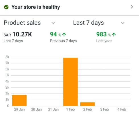 But look closer at the graph. SAR 7,900 came from ONE day (Feb 1st).